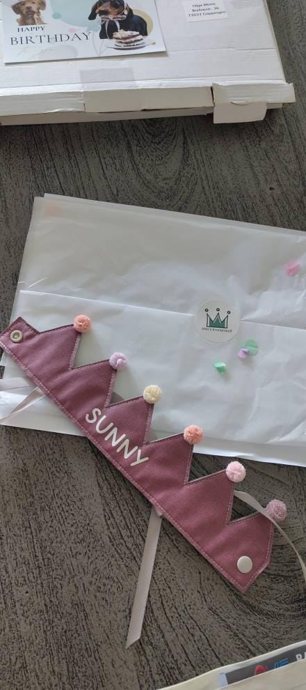The crown is made of soft felt and coated cotton, ensuring comfortable wear for your four-legged friend. With its vibrant colors and cute pom-pom detail, it adds a cheerful touch to any celebration.